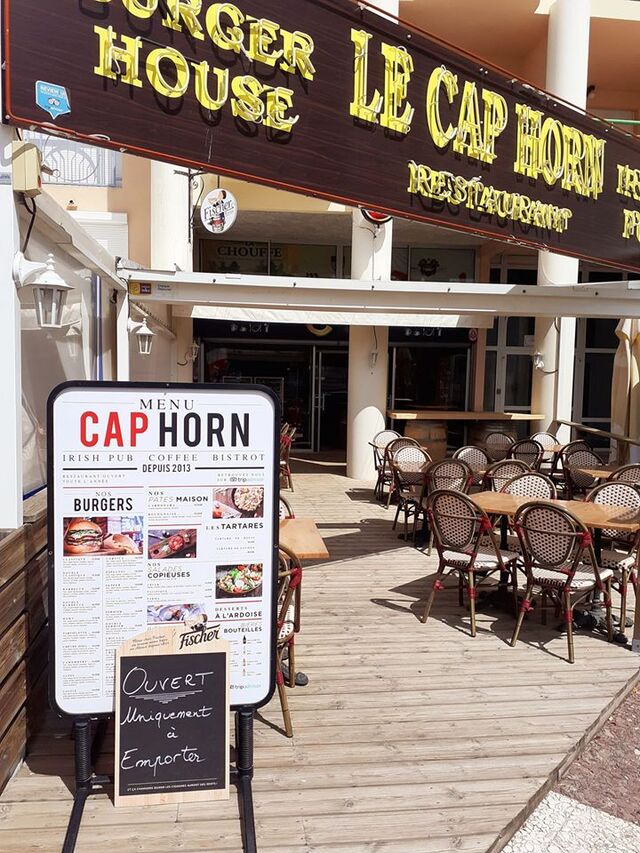 A warm welcome awaits you at Le Cap Horn. We're excited to be your host in Port Fréjus! You'll be greeted with genuine hospitality and a splendid range of french cuisine. Awesome home made cuisine and traditional cuisine is served by our friendly staff. Our flavoursome burger, pasta, and fries await you! Bring your friends and family and enjoy them. Here you could treat yourself to our delectable cheesecake and tiramisu. Enjoy tasty beer, wine, and coffee in our comfortable setting with your meal. Enjoy lunch and dinner in our stylish establishment.